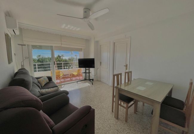 Este apartamento consta de una cocina independiente totalmente equipada, salón-comedor con vistas a la terraza y a la playa, dos amplias habitaciones con armarios empotrados y un baño independiente completamente equipado.
