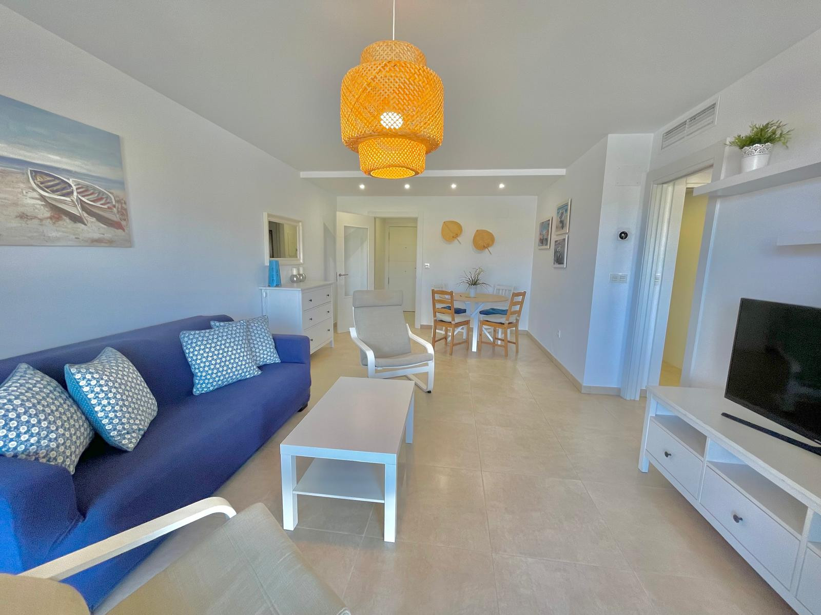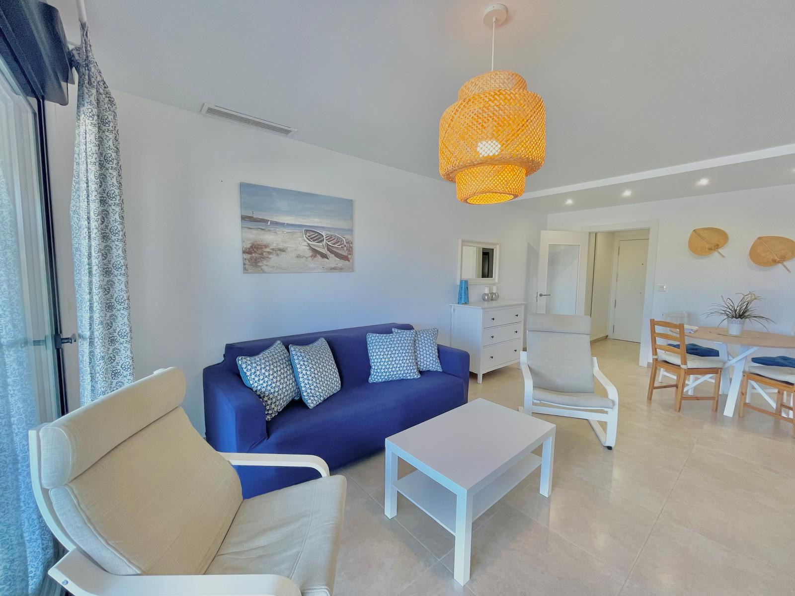 Este apartamento en planta baja se distribuye de la siguiente forma: al entrar encontraremos cocina al estilo americana muy bien equipada; todo lo que necesites estará ahí. Salón comedor con sofá cama, TV, aire acondicionado y buena conexión Wifi. El dormitorio con cama de matrimonio y un amplio armario.