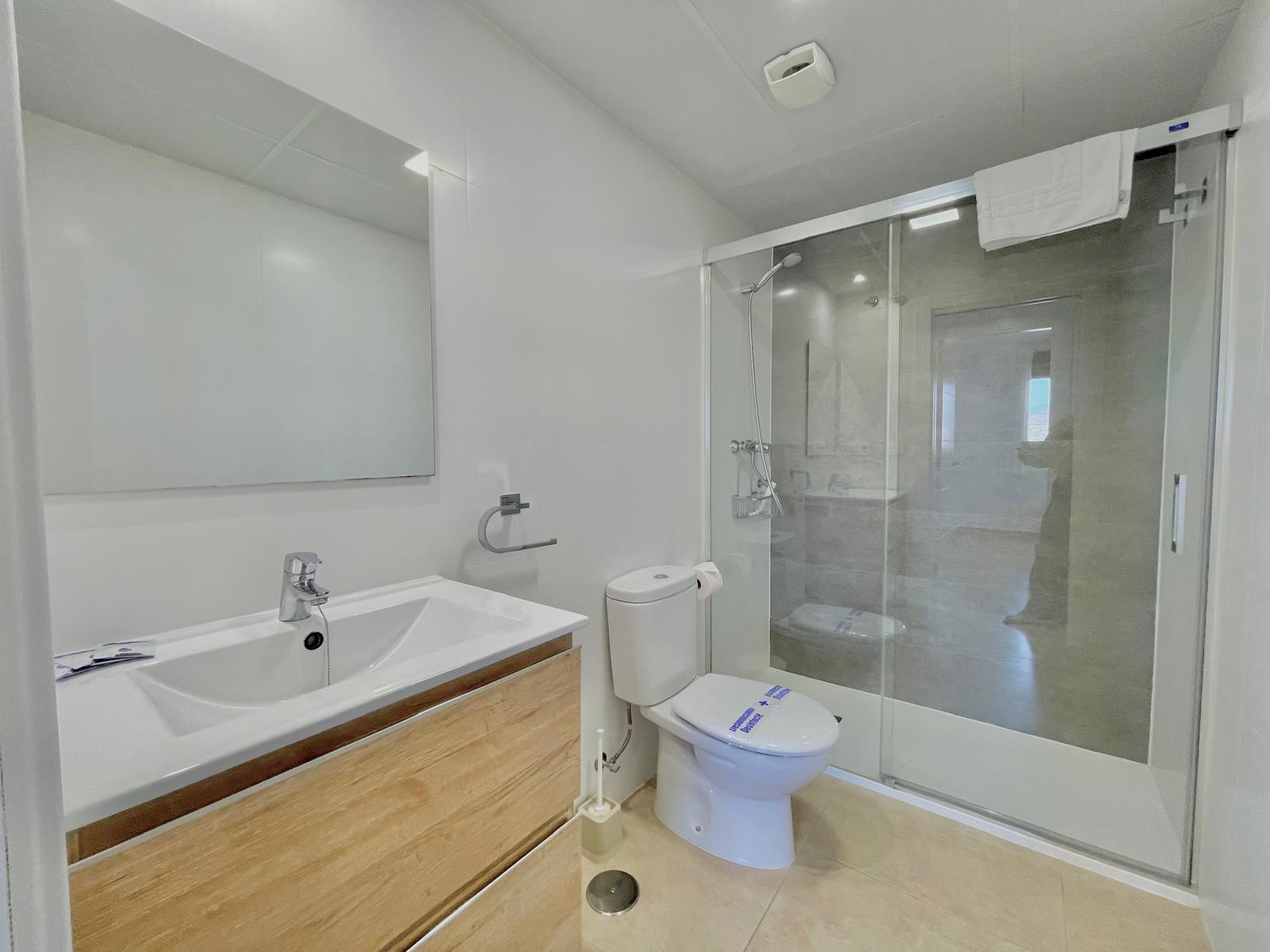 Además, el apartamento cuenta con un moderno baño completo con ducha.