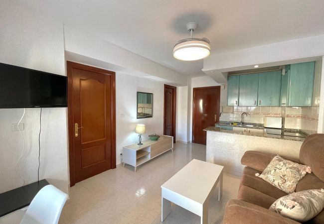 El apartamento cuenta con un salón comedor, un dormitorio con cama de matrimonio, una acogedora cocina americana y un baño con ducha. El aire acondicionado te asegura un ambiente fresco incluso en los días más cálidos.