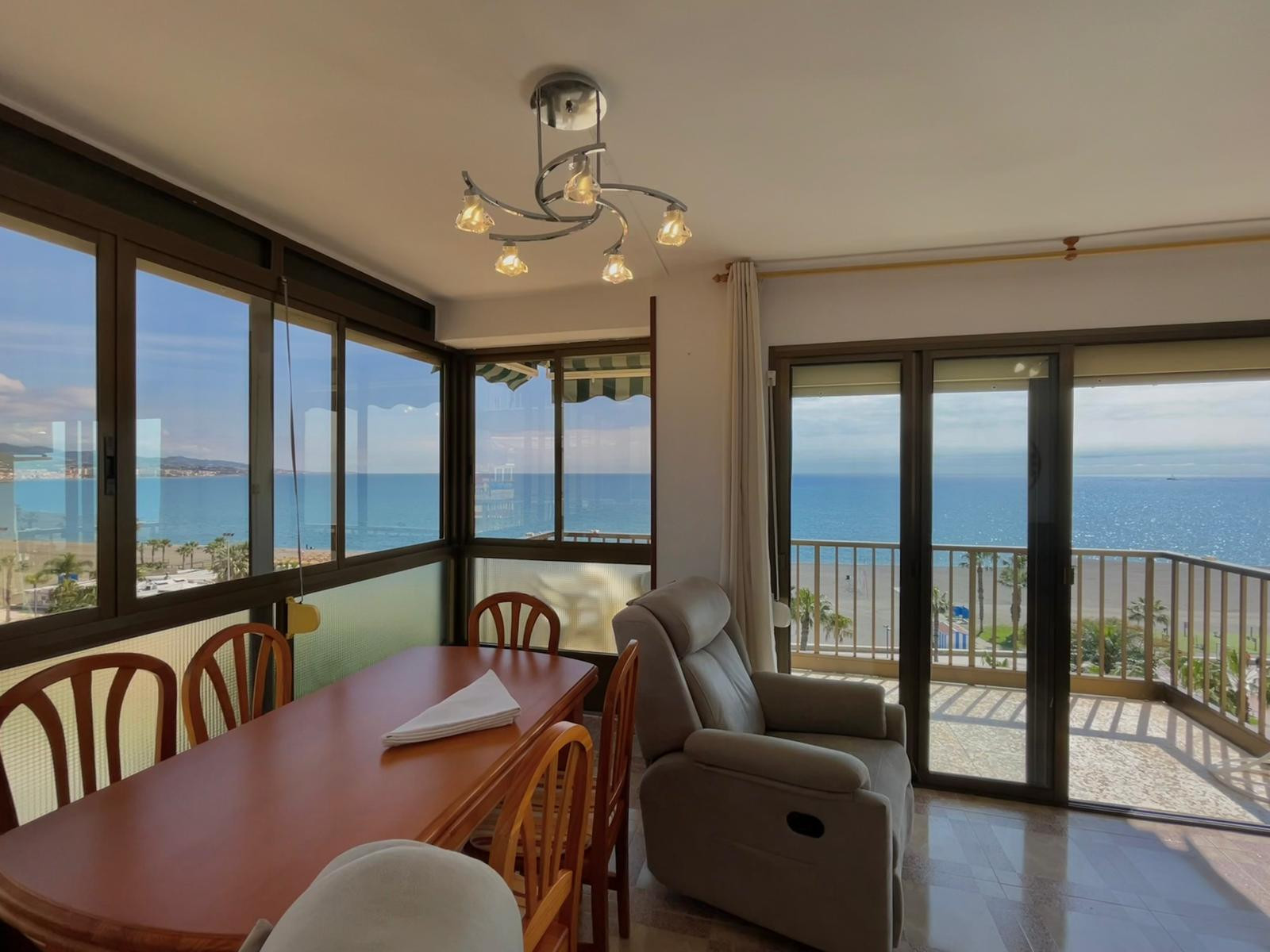 Uno de los grandes atractivos del apartamento es su amplia terraza con maravillosas vistas al mar, el lugar ideal para desayunar al aire libre, disfrutar de una cena al atardecer o simplemente contemplar el Mediterráneo.