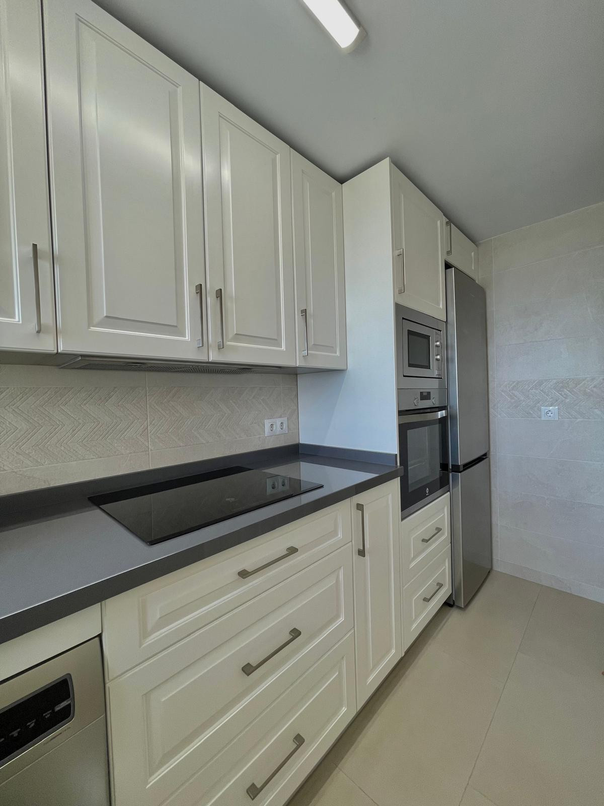 El apartamento consta de dos amplias habitaciones con armarios empotrados, una cocina independiente totalmente equipada con lavadero, un salón-comedor con vistas a la terraza y vistas panorámicas al mar.
