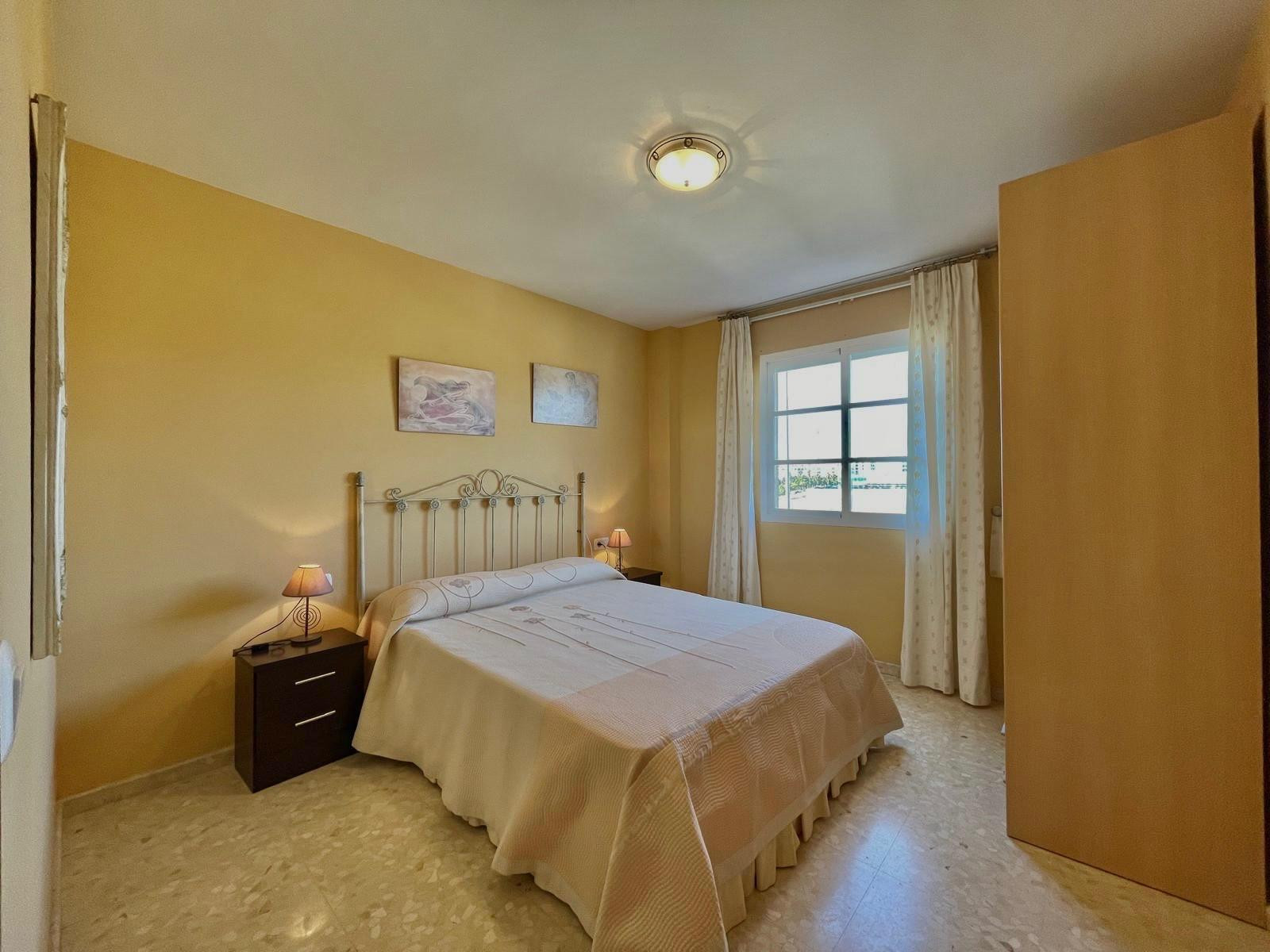 El piso se compone de 2 dormitorios, uno de ellos con cama de matrimonio, y el otro con dos camas individuales, también tenemos 1 baño completamente equipado con plato de ducha, un aseo, cocina independiente, salón comedor muy amplio con aire acondicionado, amplia terraza con orientación oeste.