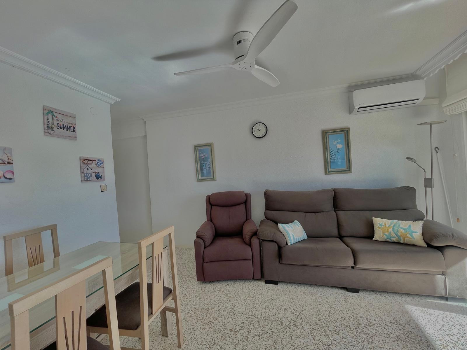 This apartment consists of a fully equipped independent kitchen, living-dining room with views of the terrace and the beach, two spacious bedrooms with built-in wardrobes, and a fully equipped independent bathroom.
