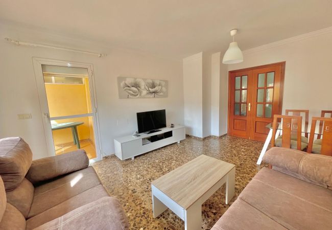 The housing is located in Torre del Mar, next to shops, typical bars of the area and sports facilities, close to the beach and the boardwalk, a very quiet and comfortable area.The housing consists of two spacious bedrooms with built-in closets, a spacious bathroom, living-dining room with large windows, views of the large terrace and green areas, fully equipped independent kitchen.Perfect for spending warm vacations with family and friends.