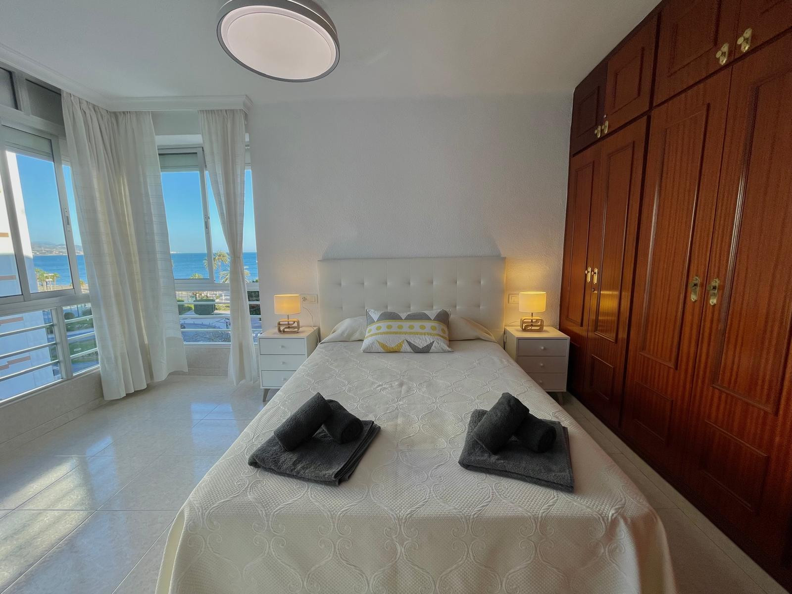 Appartement à Torre del Mar qui possède 1 chambre(s) et Capacité pour 3 personnes. Logement de 65 m². Elle dispose de ascenseur, lave-linge, fer à repasser, chauffage pompe à chaleur, climatisation, piscine collective+infantile, 1 Télévision. La cuisine américaine, à vitrocéramique, est équipée avec réfrigérateur, micro-ondes, four, congélateur, vaisselle/couverts, ustensiles/cuisine, cafetière, grille pain, bouilloire et presse-agrumes.